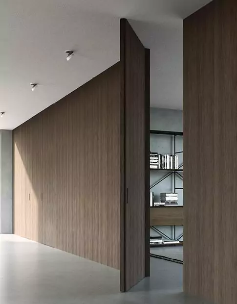 Для коллекции Ala характерны двери, двери которых изготовлены из из деревянной панели толщиной (60 мм). Эта особенность в сочетании с возможностью создания дверей большой площади делает их фактически частью стены.