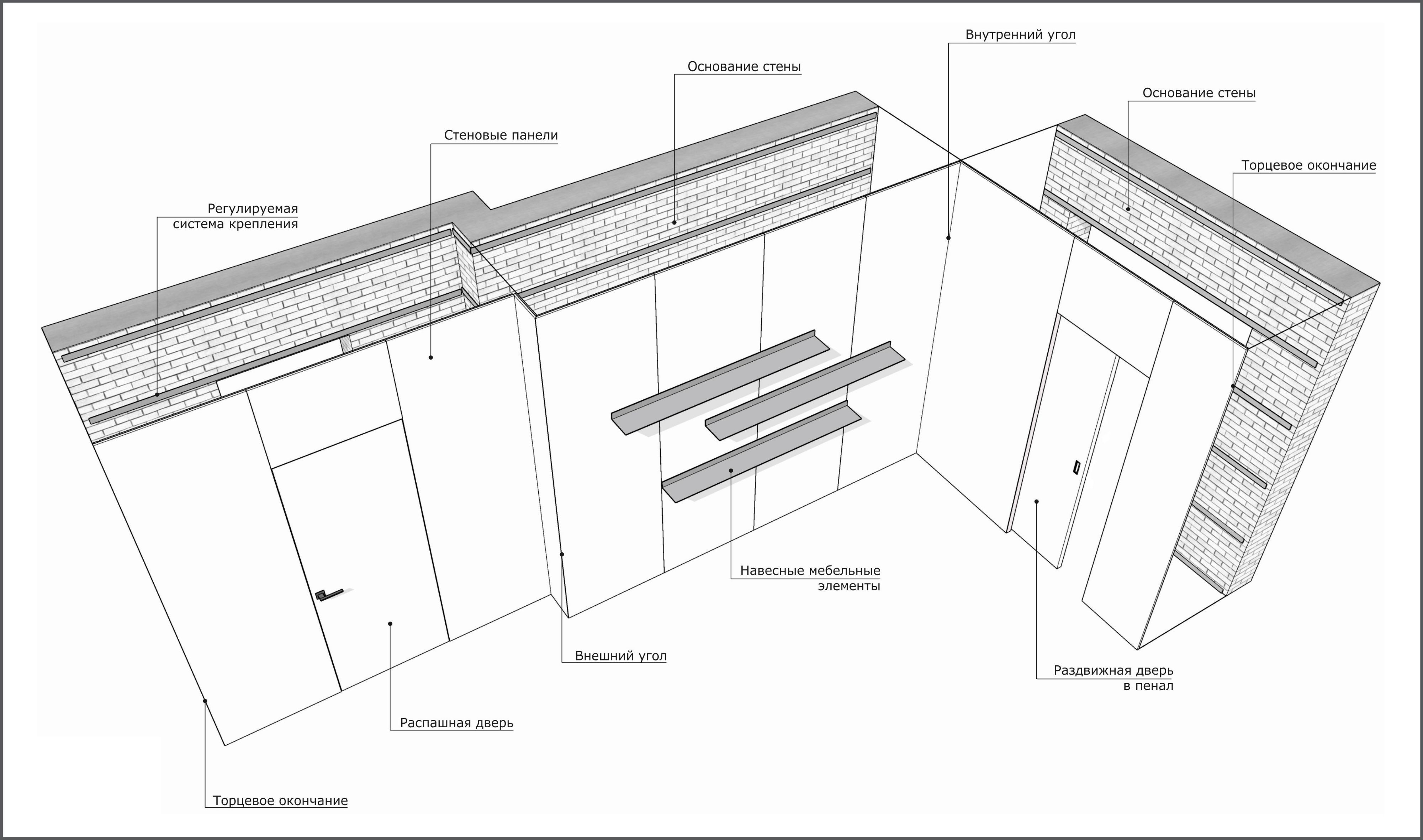 The layout of the panels is determined by agreement, depending on the configuration of the walls and the actual dimensions. The panels are supplied ready for installation complete with the necessary accessories.