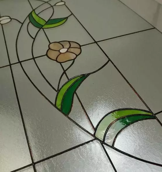 Обвязка полотна из инженерного массива шириной 10 см. Витражи Tiffany ручной работы или безопасные стекла с декорами. Leave a request