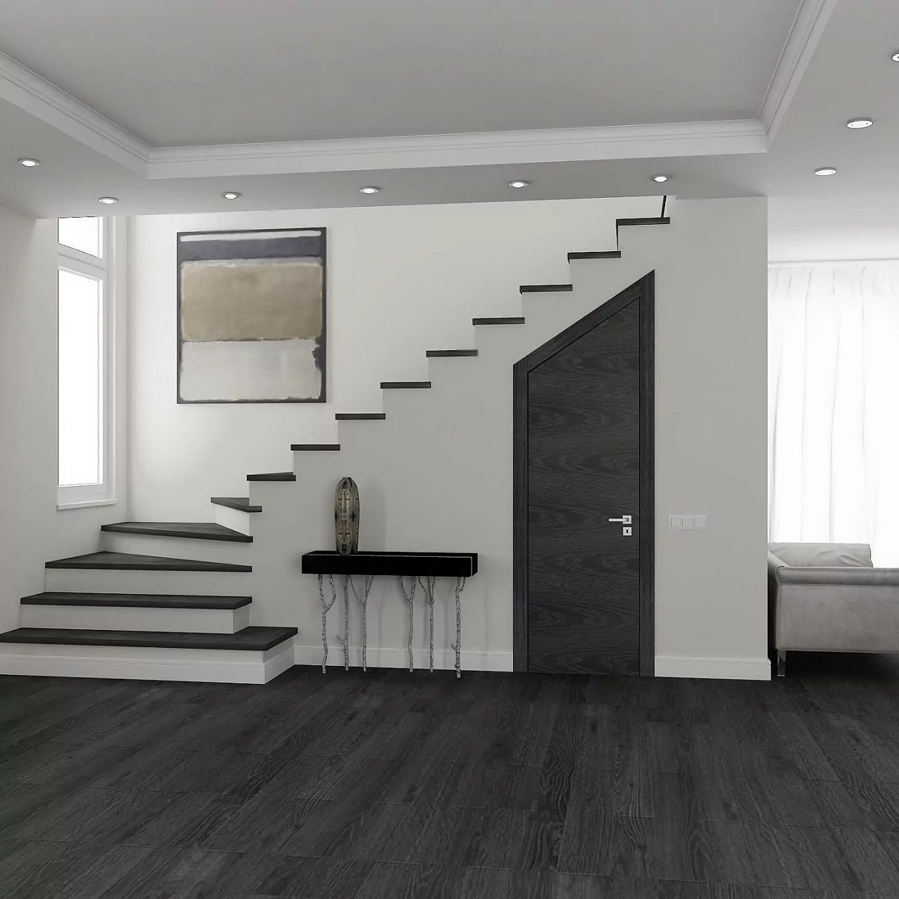 Using an attic door will allow you to move the doorway to the wall that is adjacent to the slope of the roof or to the slope of the stairs.