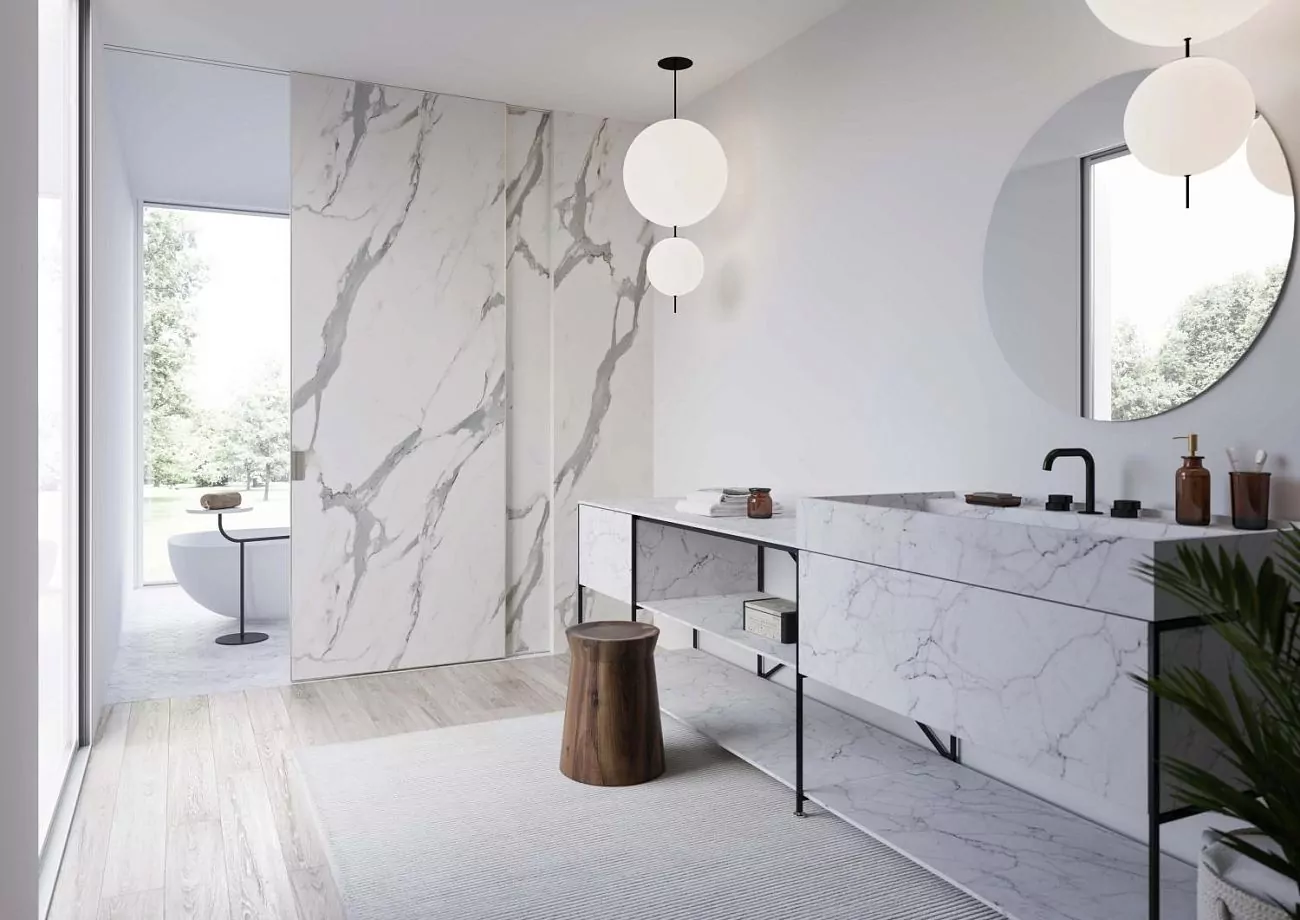 Коллекция Materica включает двери, в которых алюминиевый профиль заключен между двумя панелями из различных материалов: от окрашенного изнутри стекла до камня, от металлической пластины до керамогранита и керамики. В результате получается дверь, которая при монтаже в проём материальной стены, становится неотъемлемой частью архитектуры, реальной частью стены.