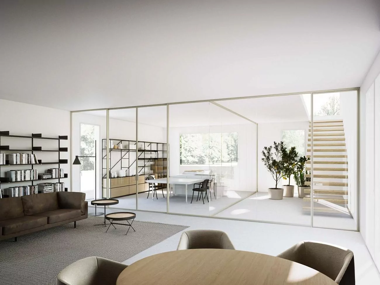 Коллекция Mies – это суперлёгкие прозрачные двери и перегородки, которые делят жилую площадь на разные, но в то же время связанные между собой помещения. Абсолютная прозрачность сплошной стеклянной стены наполняет жизнью комнаты, где видимость и прохождение света ничем не ограничены. В тоже время — это отличное решение для звукоизоляции и прерывания воздушных потоков. Благодаря широкому ассортименту алюминиевых и стеклянных элементов отделки, система Mies разграничивает площадь, прекрасно сочетаясь с любым стилем и дверями компании ADL. Запатентованная инновационная технология обеспечивает широкие возможности регулирования и простоту монтажа.