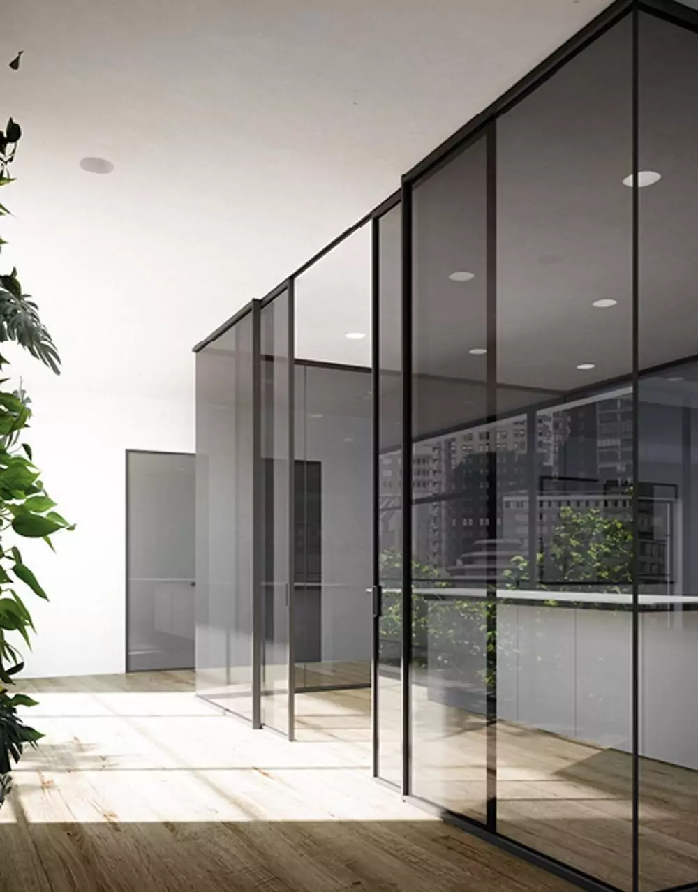 Коллекция Mies – это суперлёгкие прозрачные двери и перегородки, которые делят жилую площадь на разные, но в то же время связанные между собой помещения. Абсолютная прозрачность сплошной стеклянной стены наполняет жизнью комнаты, где видимость и прохождение света ничем не ограничены. В тоже время — это отличное решение для звукоизоляции и прерывания воздушных потоков. Благодаря широкому ассортименту алюминиевых и стеклянных элементов отделки, система Mies разграничивает площадь, прекрасно сочетаясь с любым стилем и дверями компании ADL. Запатентованная инновационная технология обеспечивает широкие возможности регулирования и простоту монтажа.