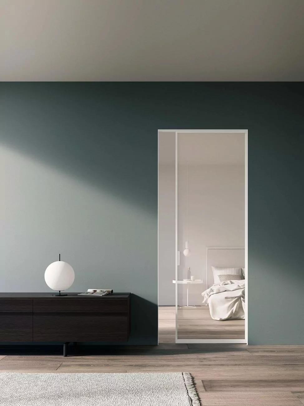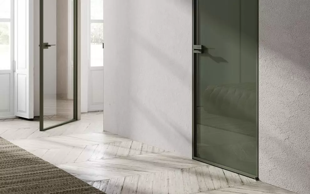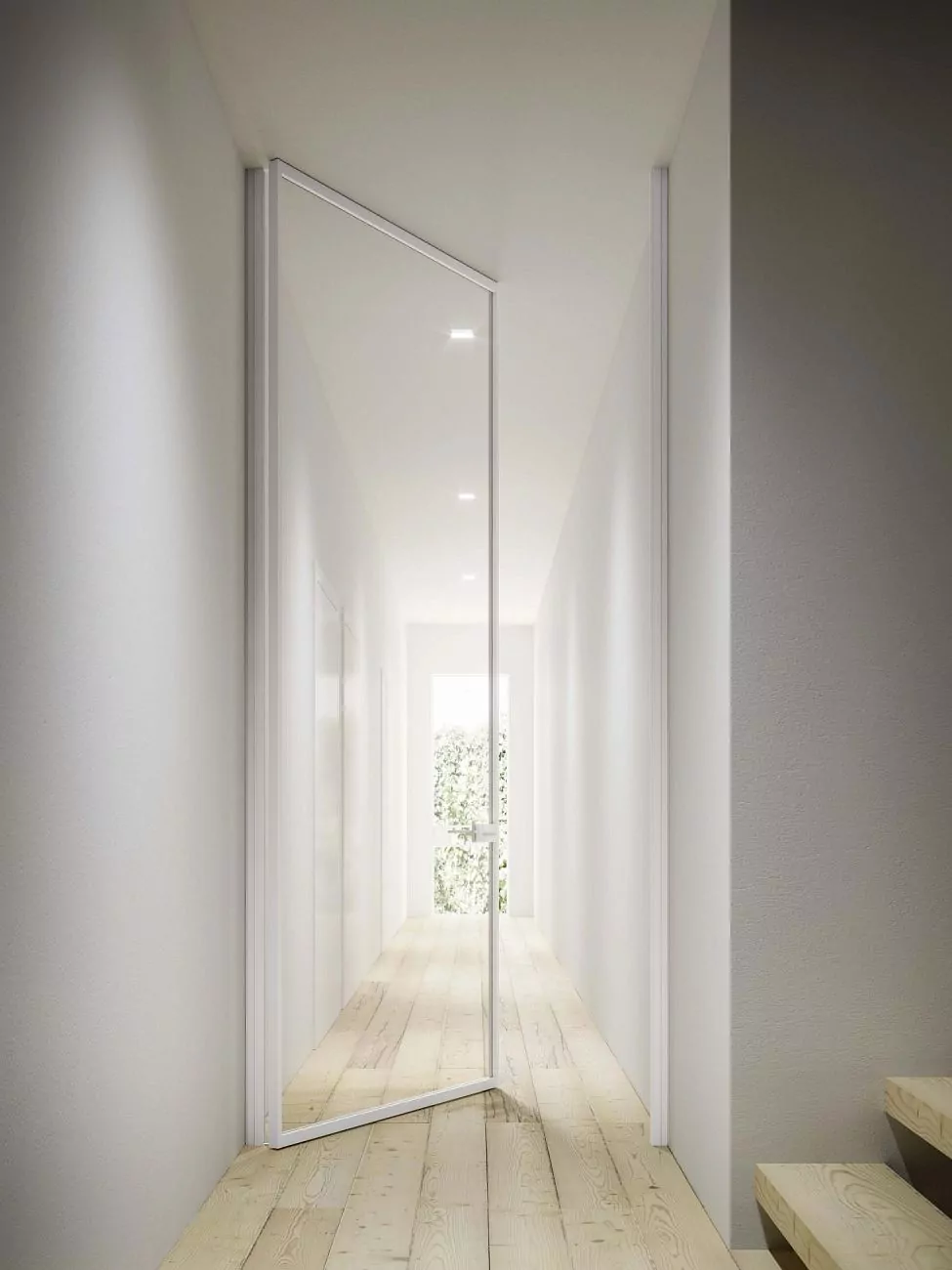 Коллекция Mitica отличается строгой эстетикой, которую ей придает алюминиевый профиль, в котором по центру находится стекло, и геометрия самой рамы полотна, которая состоит из стоек 18 × 36 мм и поперечин 36 × 36 мм. Благодаря высокой технологии производства и историчности этой коллекции, двери Mitica доступны во всех типах открывания, а именно: