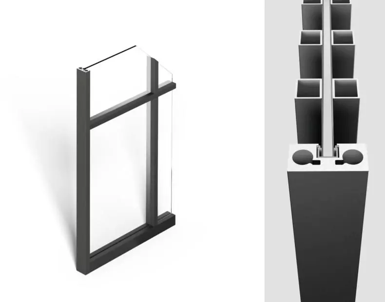Коллекция Officina воплощает в себе узнаваемую эстетику индустриального стиля благодаря использованию алюминиевых перемычек, наносимых в виде решётчатого переплетения на стеклянное полотно с учётом пожеланий заказчика.