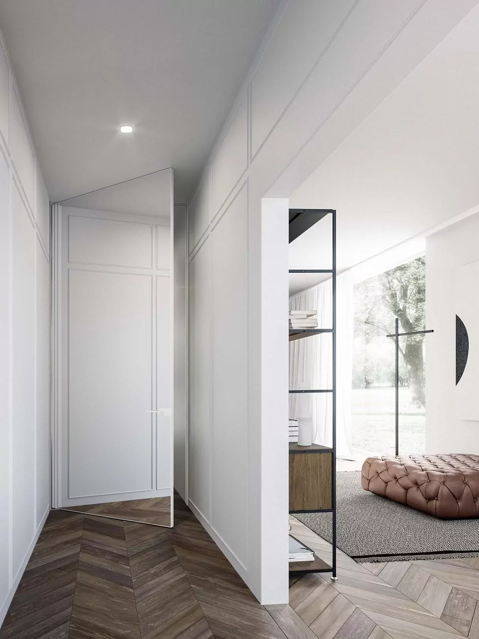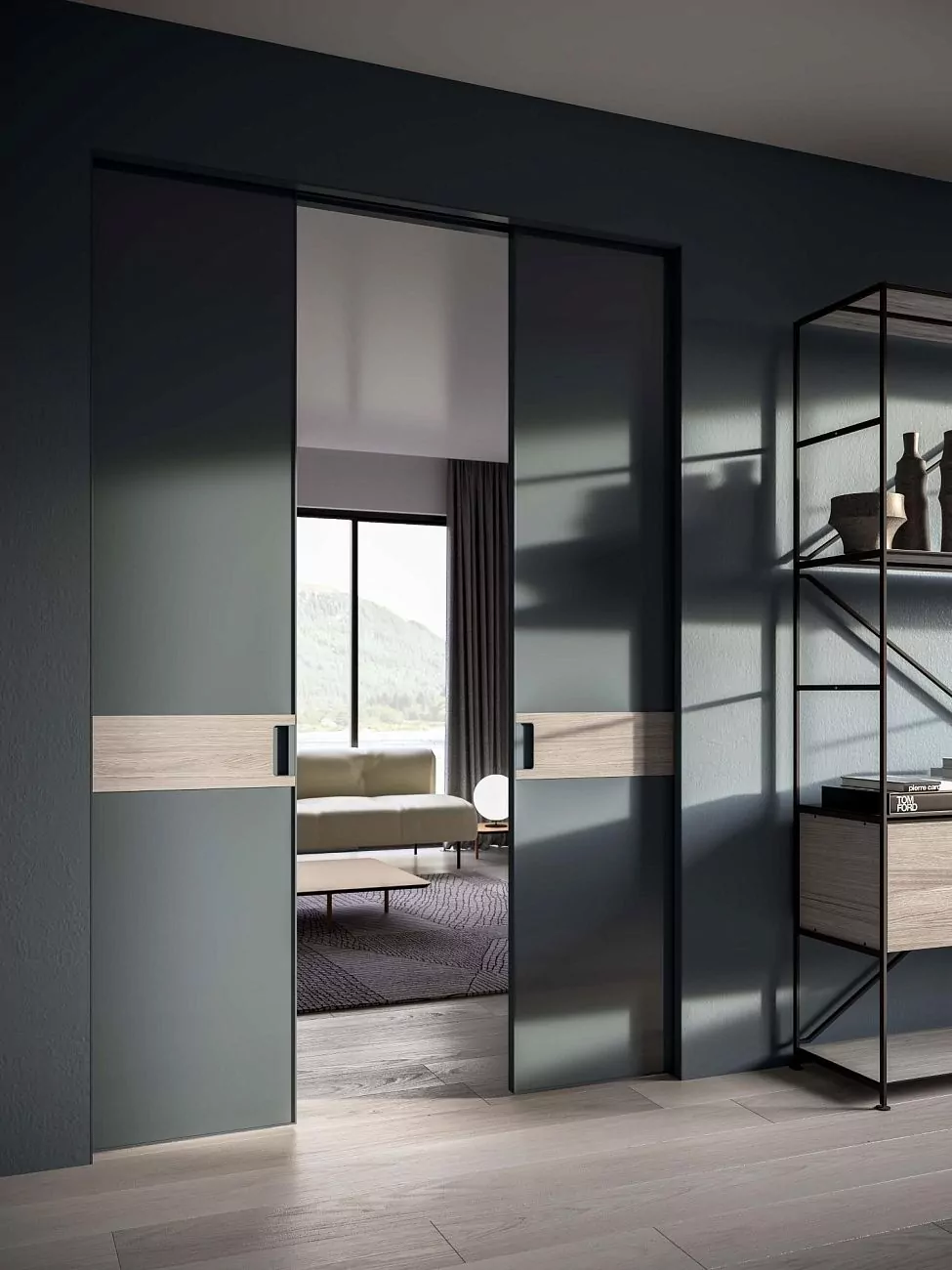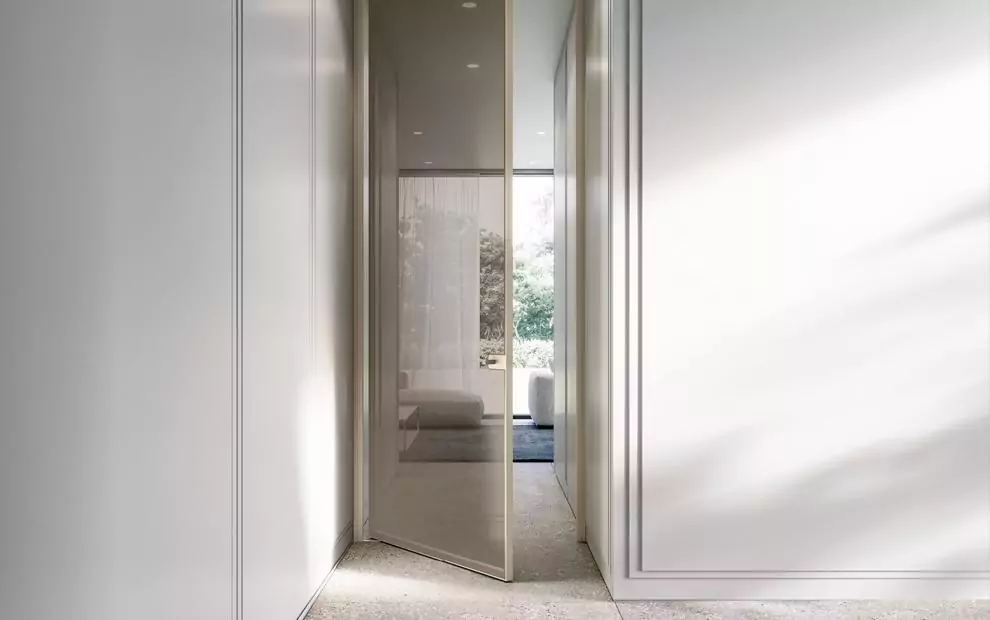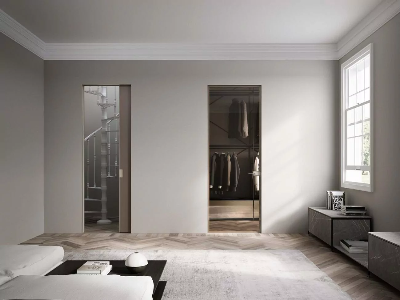 Коллекция Piana отличается полотном с алюминиевым профилем, заключенным между двумя стёклами. Эффект, получаемый при таком типе сборки, придаёт двери форму однокамерного стеклопакета идеальной ровности, что делает её подходящей для самых изысканных интерьеров.